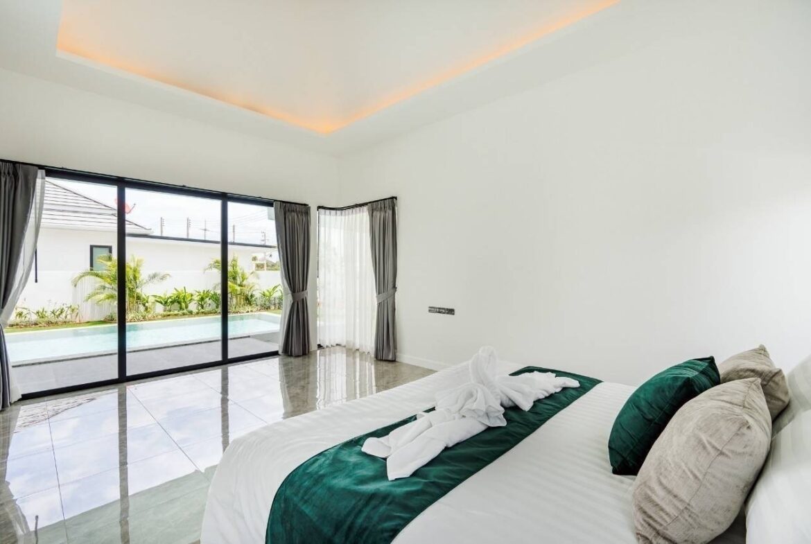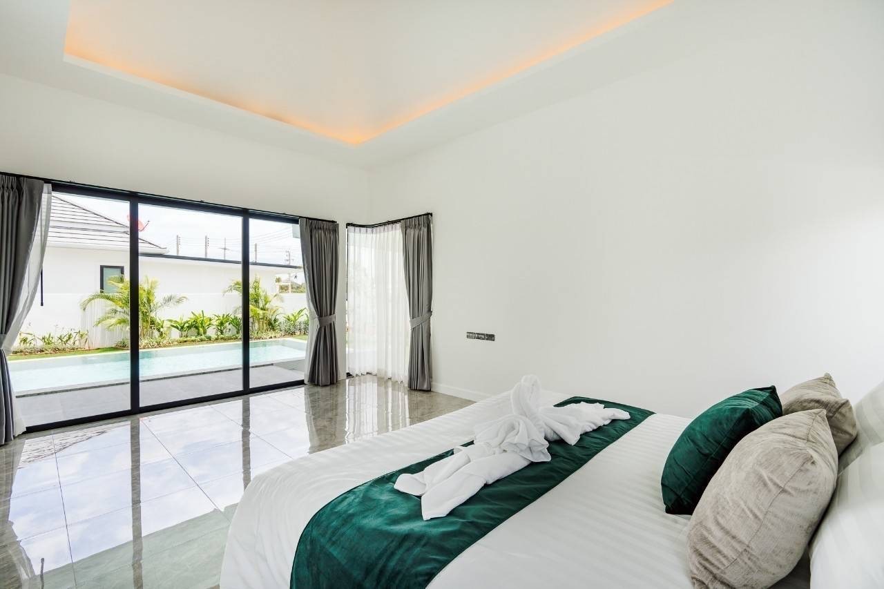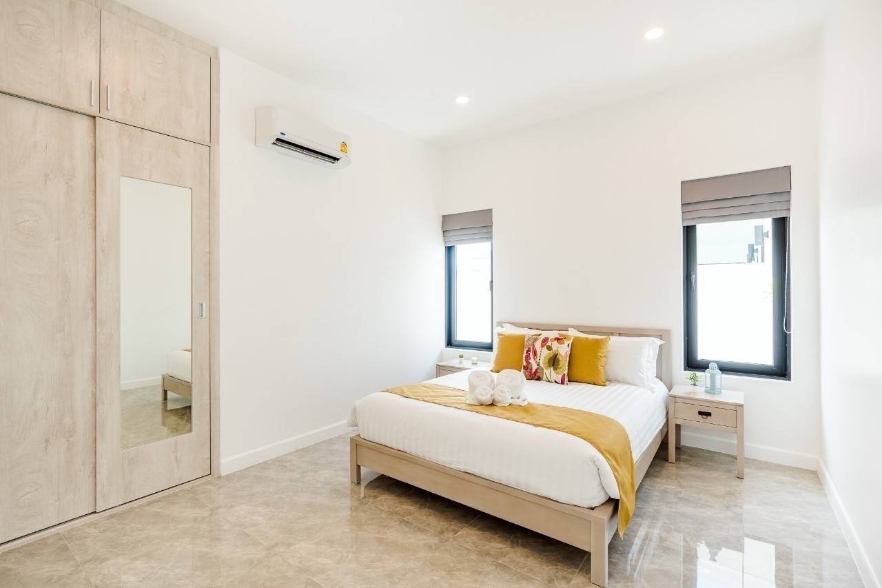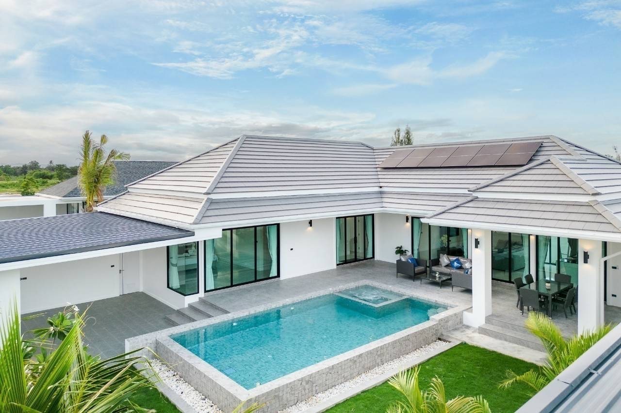Charming Single-Story Villa in Hua Hin. This delightful villa is situated in the picturesque coastal town of Hua Hin, Thailand. An ideal retreat for those seeking a peaceful residence in a serene setting, this property boasts a well-maintained single-story layout nestled on a compact plot. The villa features multiple bedrooms and is fully furnished, offering a turnkey solution for immediate occupancy. The interiors are designed to blend modern comfort with tropical aesthetics, promoting a relaxed lifestyle. Highlighting its luxurious amenities, the property includes a private swimming pool surrounded by lush greenery, providing a perfect oasis for relaxation or entertainment. A garage ensures secure parking and additional storage space. Located in a beautiful neighborhood, the villa benefits from its proximity to local markets, exquisite restaurants, and the stunning beaches of Hua Hin, making it an exceptional choice for both full-time living and holiday getaways.