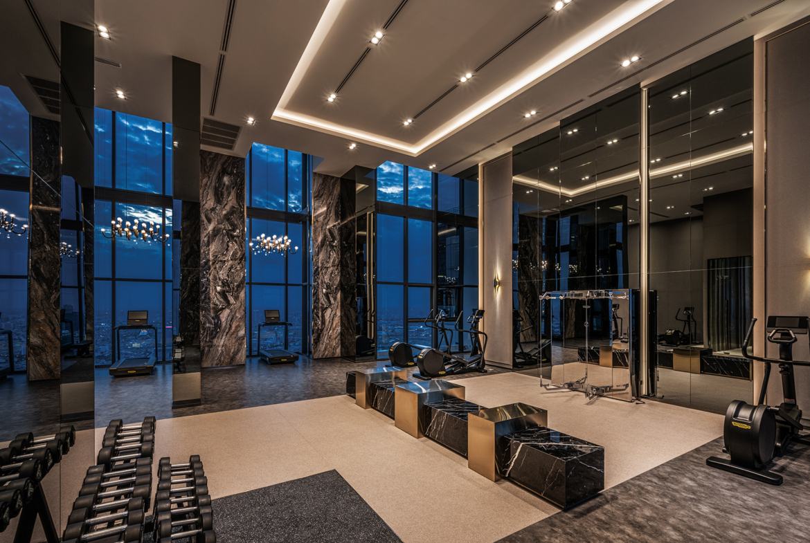Luxury Condo in Ratchathewi Area, Bangkok. Experience the largest indoor space of this luxury condo, featuring a state-of-the-art reception hall. The design showcases a perfect balance with spacious seating and premium materials, including walls adorned with Italy’s finest white Statuario marble. The Sky Oasis is a lush haven that rises above the bustling city, offering breathtaking views from 50 floors high, especially mesmerizing at sunset. This prime location is ideal for relaxation and tranquility. Cloud Fitness offers a comprehensive workout experience with stunning city views through glass walls. The innovative Kinesis system provides over 200 different exercises to help you achieve your fitness goals.